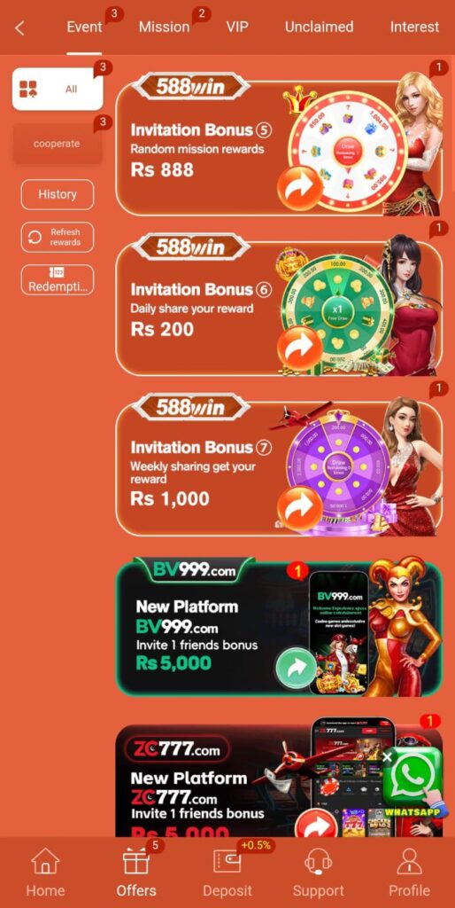 Some platforms like 588Win may offer bonuses such as: