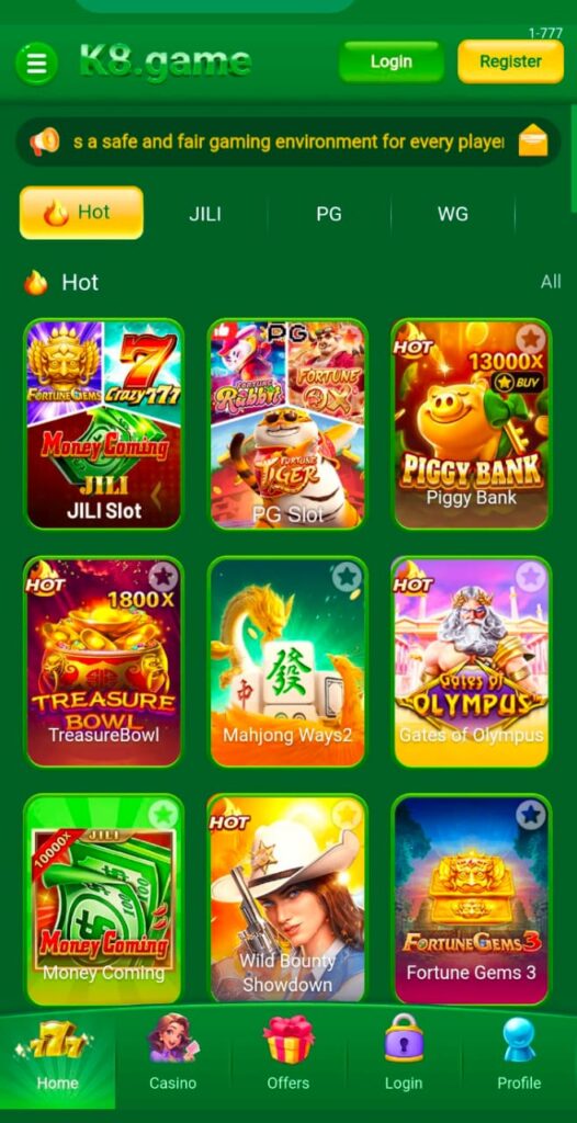 K8.game is a simple and fast online gaming platform. In fact, it is made for players who prefer easy games that are simple to understand. The site works well on most devices. Therefore, users can enjoy smooth play on both mobile phones and computers.