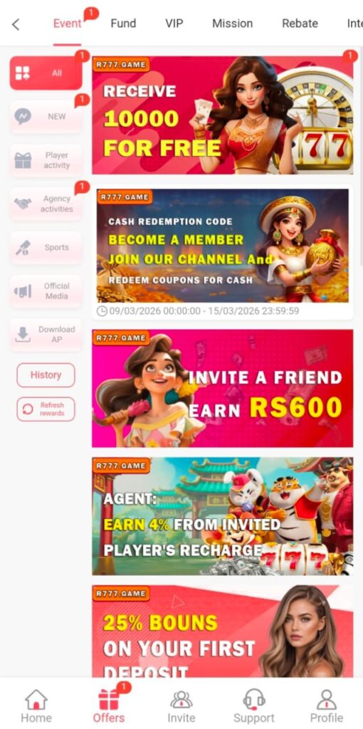R777.GAME has a number of features that appeal to most players. These characteristics contribute towards the purpose of designing a smoother and enjoyable game play.
